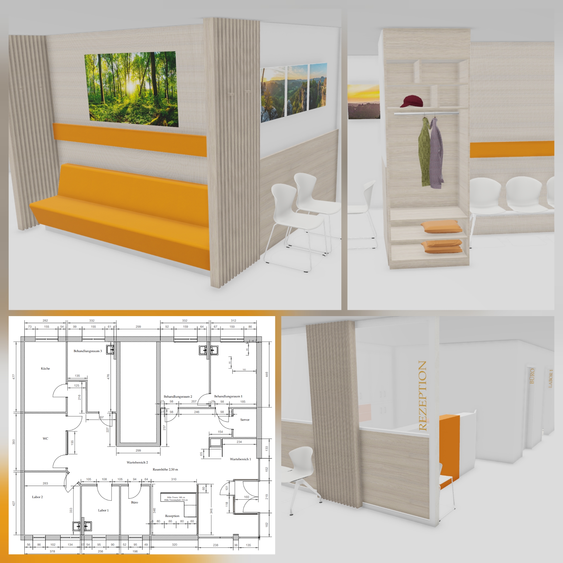 Alles beginnt mit den Wünschen meiner Kunden. Welche Farbe spricht sie an, was können Sie sich vorstellen, welche Materialien mögen Sie. Welche Farben und Materialien sind im Bestand, wie Bodenbeläge und Möbel.